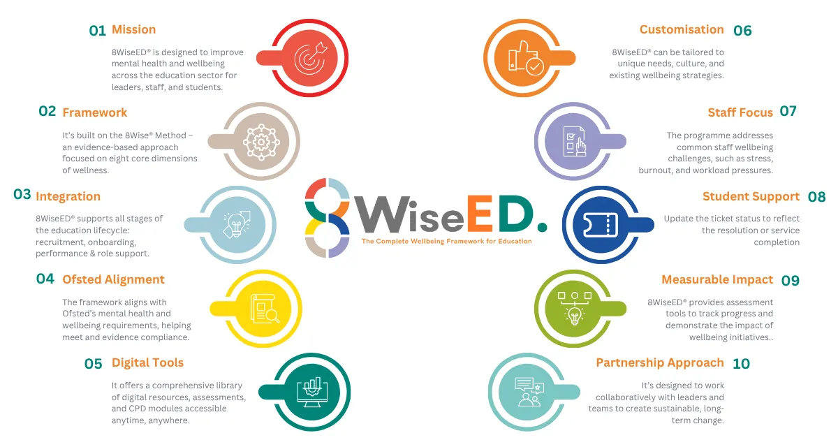 8WiseED provides practical support for schools and colleges through a range of services designed to strengthen wellbeing across the whole education community.